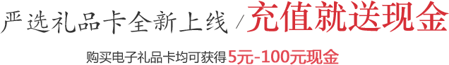 · 1、礼品卡可多次累积使用 2、可用严选上任何商品(包括味央猪肉系列) 3、可叠加优惠券等所有措施使用!· 仅限1月10日-1月20日活动期间,每个帐号购买每种电子礼品卡均可获得一次现金。购买的金额和赠送的金额会放在您帐号的礼品卡中!