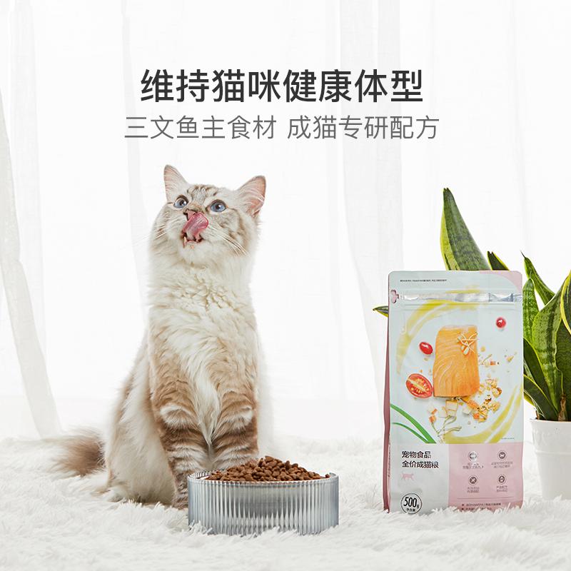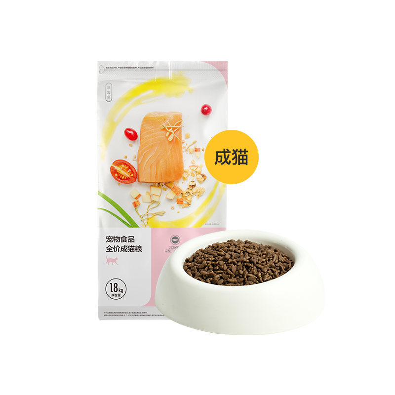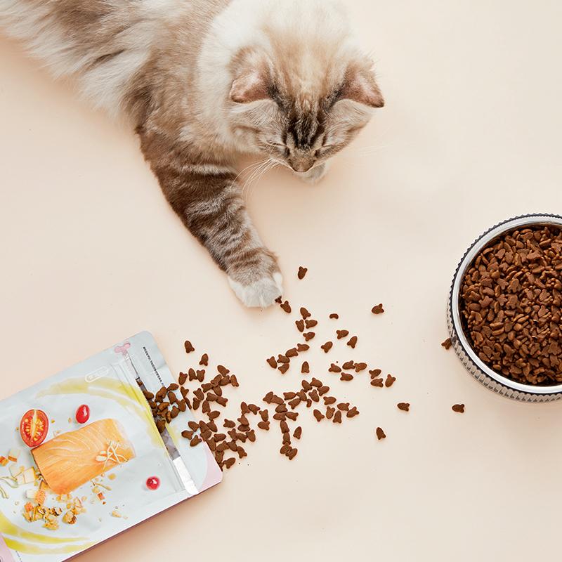 这款猫粮是之前全价猫粮的升级款,耗时研发了专业配方,更适合成年猫。相比普通猫粮,这款主要采用三文鱼,无谷物添加,在国产粮里可以说是很豪华了。还特别添加了牛磺酸、L-肉碱等各种成分,就跟人吃饭一样,营养均衡才健康。