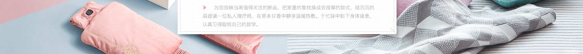 当抱枕与按摩功能碰撞,它就变成了全能型选手,较之寻常的蝶翼形按摩枕,着力面积更大,腰背肩颈都能周到覆盖,全面舒缓肌肉紧绷。更有针对型的按摩肩带可以深度按摩穴位,舒经活络,缓解酸痛。这两款选品的按摩手法都是专利技术,连真人按摩的手指的长短不一感都可以模拟。常驻空调房的日子,很需要热敷来驱散腰腹寒气,我们采用科技材料石墨烯打造了一款暖宫腰带,它的传热方式与阳光相同,是由内而外产生均匀深层的热感,不是浮于表面的那汇总灼烫感。配合草本的淡淡甘香,在温暖中放松舒心。