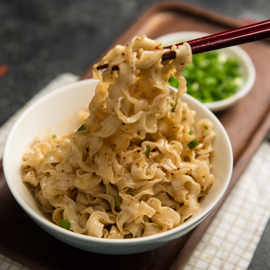 建议大家面煮5-6分钟,沥干,淋上麻酱、蒜油和酱汁,充分搅拌,拌到蒜和麻酱的香气四溢,面均匀地挂着酱、泛着光,就可以吃了。吸溜一口,面条没进口之前能在空中抖起来。葱蒜的炝香、酱油的鲜咸和麻酱的浓郁,味道香浓,非常好吃!希望大家喜欢!