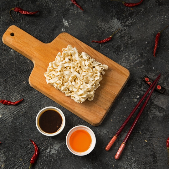 我们的面很特别,属于台南关庙面的古老做法——在台南的太阳下充分暴晒8小时以上,历经8道程序才能做好。这样的面久煮不烂,筋道、爽滑、好入口。